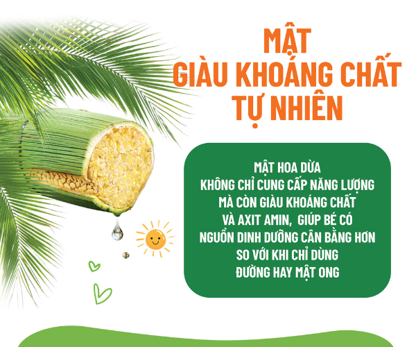 Mật hoa dừa cô đặc organic Sokfarm là nguồn ngọt tự nhiên có đặc tính hấp thu chậm, giúp năng lượng được giải phóng từ từ và ổn định hơn trong cơ thể bé. Nhờ đó, bé có đủ năng lượng cho các hoạt động học tập, vui chơi và vận động hằng ngày mà không tạo cảm giác “nạp nhanh – tụt nhanh” như đường tinh luyện.